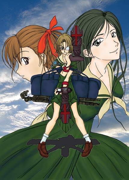で、カメラちゃんこと蔦子さんに両手持ちをしていただきまして、こうなりました。前景の蔦子さんは「ガングレイブ」のイラストのままになっているのですが、元イラストの背景は白で文字が前面にあるだけと言うシンプルな構図です。新刊の表紙としてはそのままでは寂しいので、紅薔薇姉妹に背景として登場していただきました。元々の構想については、「らくがき」にある下描きを参照してください。