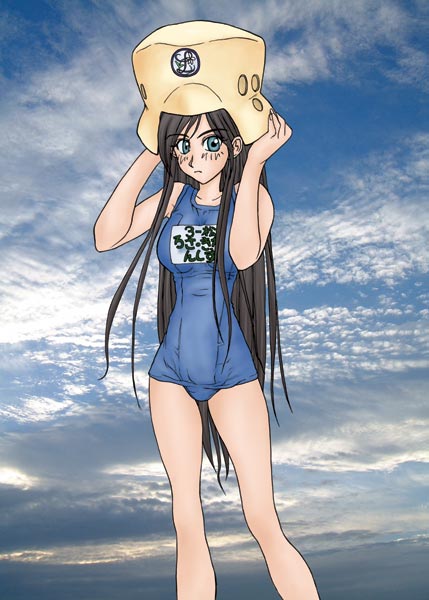 生徒会つながり、結構イケると企画段階(笑)では踏んでいたのですが・・・いざ実行しようとすると、いきなり壁にぶち当たりました。カラーイラストがありません(笑)。単行本カバー裏はモノクロで、アフタヌーンはもう買ってません(爆)。その上、パズルは組み立てても資料にならない事が判明するし。唯一あったのが、二巻裏表紙の、このスク水の会長のみ。わ、わかりにくい〜(爆)。一応、ヘルメットのエンブレムが、アニメ設定で発表されたばかりのリリアンの校章だったりします。