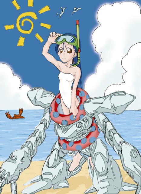 一応、文字なしバージョンも載っけて見ました☆ 子供の頃は、ロボットばっかり描いていました。ところが、ある時気がついたのです。”ヒト”が全然描けてない事に。 それから、一生懸命練習して、一番苦手だった女の子が描けるようになりました。そして、今。女の子は楽に描けますが、メカがカッコ良くかけません(爆)。いや、描くの自体は好きなんですけどね・・・あまりカッコ良くならない(汗)。 ハイゴック描こうとして、その事を痛感しました・・・なんだかなあ。 |