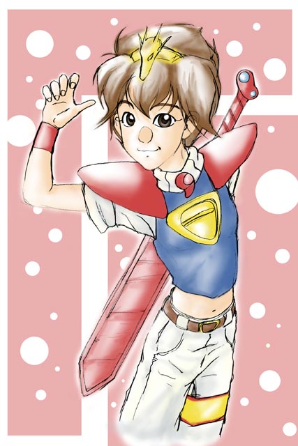 誕生日プレゼントで、純さんにお贈りしたイラストです。 以前にお渡しした小狼がお気に入りだそうでして、しばらくCUREのトップに使って頂いてました。その写真を見ながら・・・そのまま似顔絵も芸が無いかと思ってワタルにして見ました(笑)。何故ワタルなのかは、秘密。 資料を探す為に、久々にOUT引っ張り出しました。ワタルと言えば、 OUTでしょう(笑)! なを、へそ出しなのは小狼の写真のせいです。ワタルはガルキーバ以前の作品ですので、へそを出していません。桃矢が元祖へそ出しヒーロー・・・誰が知ってるんだ(爆)? とまあ、ごまかそうとしてはみましたが、純さんのおなかはカッコイイなあと言う事です(爆)。 |
