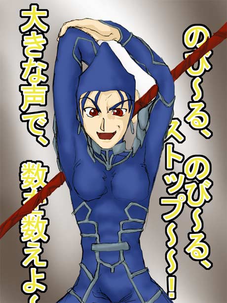 ・・・いや、何となく(爆)。 元々、彼、全身タイツマンですし、ちょこっとだけいじったらこうなりました(笑)。 サーバントは、クラスを相手に悟られない方が戦略的に優位に立てますし、そういった屁理屈を立てられて令呪を使われた日にゃあ、彼に逆らう術はございません(笑)。 言峰:「名を尋ねられたら、 ”ストレッチマン!” と答えよ。」 キイイィィン←令呪を使う音(笑) 言峰:「ちなみに、出身地はストレッチ星で趣味はストレッチ。苦手なものは雷だ。そのように振舞え、解ったか?」 ストレッチマン:「・・・・・」 ・・・あ、マイドンがギル様なのか(爆)? |