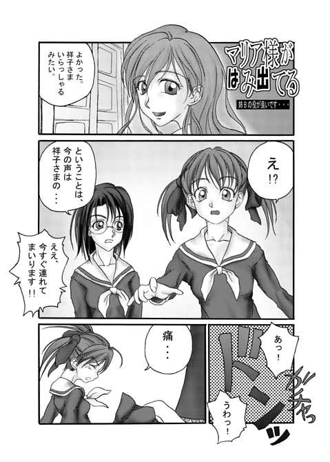 今回、当初はFateで普通の漫画を描こうとネタを暖めていたのですが、あゆさわ准将の反応を見て、一本ネタは避けることに。で、めでたく「マリみてでFate」漫画となりました(笑)。 ネタの変更その他のせいで、作業に取り掛かったのはいつもよりも遅いくらい。その割には、原稿黒いです(笑)。作業の効率化が思いの外進んでいる事もあるのでしょうが、やっぱ思い入れのある作品が多いと、ネタの捻り出しがスムーズです。・・・それでもひねり出しているのですが(汗)。 あ、ペン入れ終わって取り込みして、PC上で作業している途中である事に気が付きました。・・・効果線入れてない(爆)。折角黒い原稿なのに、画描点睛を欠くとはこの事です(汗)。 一本目「マリアさまがはみ出てる」は、良くあるネタ(爆)、ネット上ではあちこちで使い古されている感もあるのですが、とりあえずFateネタでスタートするのに必要なオープニングです。ラストのコマで私っぽく味付けしてあります。 |