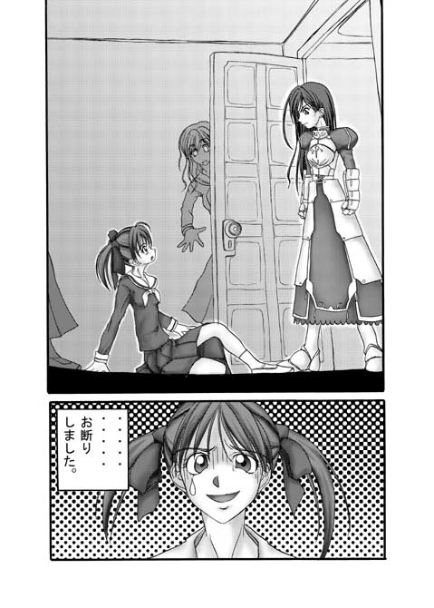 二本目「窓の外から何かがみてる」は、ライダーと可南子ちゃんは似ているなあ、とそれだけ(笑)。あ、可南子ちゃんだと解りましたか?サイドの髪の流れに注目。・・・似過ぎているのも考え物かも(汗)。 オチの桂さんは、はっきり言って付け足しです(爆)。でも、彼女の扱いが本編中でも不幸なのは事実。頑張れ!桂さん(笑)!! ラストの「キャスター由乃」は、二本目の下描きしている時に突発的に浮かんだネタ。描くの簡単そうなので、なんとか追加しても締め切りに間に合いそうだったので描きました(爆)。実は、一番きれいにまとまっているのがこの漫画だったりします(笑)。 Fateの登場人物にマリみてのキャラクターを当てはめるのって、あまりしっくり行きません。まあ、当然といえば当然なのですが。この二人は、意外にきれいにはまっているのではないかと。由乃さんの二つ名は、魔法使いならぬエスパーですから。 ・・・ところで、「エスパー魔美」って、知ってますよね(爆)? |