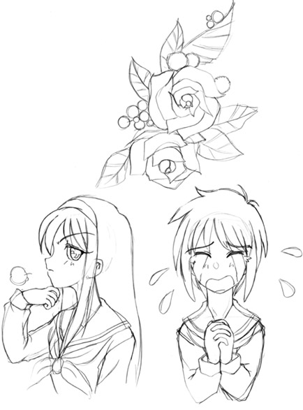 VIDO.16で使用しなかったカット。あ、薔薇は使ってます。 裏表紙がそのままでは弱いような気がしたので、上にかぶせるつもりで用意だけしてました。 ま、シンプルいずベストと言う言葉もありますし、手を入れすぎてゴチャゴチャするのを避ける為、使用せずに完成としました。 時間も無かったですし(笑)。 |