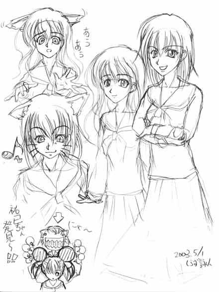 白薔薇姉妹です。立て続けに絵をアップしてますね、珍しい(笑)。今までの反動でしょうか? 乃利子ちゃんが居ないので、正確には”元・白薔薇姉妹”なのですが、どうしてもロサ・ギガンティアというと私的には佐藤聖さまなので。 これも一応、前ページの蔦子さんと同じく習作なのですが、ページいっぱい絵で埋まっているので、”習作”の文字は取りました。 志摩子さんが、思いのほか描き易い事に気が付いてビックリ。天使みたいな、くるくるふわふわの髪の毛・・・描き易くってわかり易いし(笑)。 |