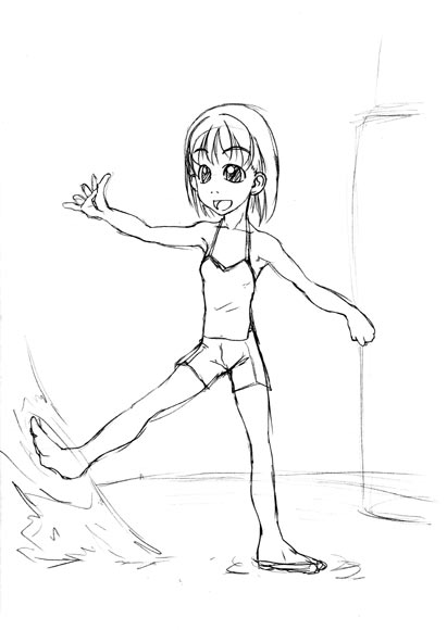 本当に、らくがき。 ここん所、なんとなく忙しかったり無かったりで、なんも描いていません。 リハビリ兼ねて、水辺で遊んでいる子供のイメージで・・・ あ゛あ゛あ゛っ! やっぱ、腕落ちてるぅッ!! 夏コミまでに、どの程度リハビリできるだろう・・・(汗)。 色付けようとかも思ったのですが、忙しくてそのままです。このままで大丈夫なのか?私・・・ |
