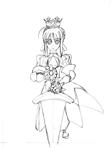 本当は、描くのがもっと楽な別の構図で行こうと思っていたのですが、結局この構図に。いや、折角なのでプリンセスクラウンの音楽CD聞きながら作業しようとCDを引っ張り出したのですが・・・パッケ見て思ったわけですよ。やっぱ、プリンセスクラウンと言えば、この構図だよなぁ、と。