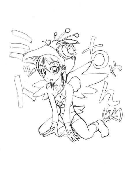 元ネタの判別できる人がどのくらいいるんでしょう(爆)?・・・いねーよ(笑)。 別の所で使う為に突発的に思いついて描いたらくがき。例によって、ネットで資料を集めようとしたのですが・・・見当たりません。 どうやら、そんなキャラ元々いなかった事(笑)になっている模様。 そんなわけで、後の世に伝える為に、記憶のみで再構成して描き上げました。いっそ、オリジナルという事にしたほうが良いのかな(笑)? |