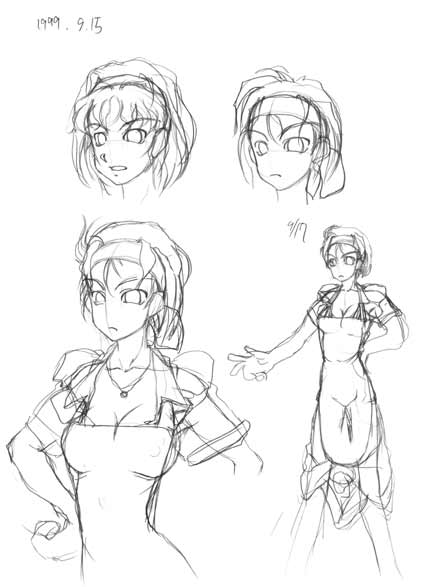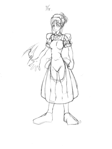 | テレスが出来てから、細かいデザインを決めるつもりなので、ラフが少ない不憫な娘(笑)。まあ、イメージは固まってますし、対称的かつ、二人でワンセットな姉妹ですので、片っ方が出来れば、もう一方も出来たようなモンです。 |