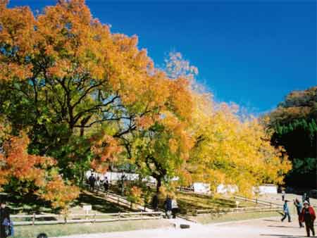 本当は、半分がもっと黄色でもう半分がもっと赤くなって、強竜神だか幻竜神だかシンメトリカルドッキング〜ッ!!!ってな感じに例年ならなるのですが(どんな感じだ!)、今年はこんなものでした。一応全景も載せておきます。根性が無いので、観光客も写ってます。あしからず。