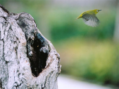 車で1時間半程行った所に、古い日本家屋を中心にした町営の公園があります。いえ、別にメジロはそんなに遠出しなくても見られる鳥なのですが、知人が餌付けに成功しているので、行ってみました。 餌付け、と言うと人聞きが悪いのですが、本人がそう言っているので(笑)。山間の田舎町で、ほっといても餌を求めて冬に鳥が山から降りてくるようですし、公園内に餌箱や巣箱があるのは普通かと。町ぐるみの犯行(笑)?いえいえ、庭の木の枝にミカンや柿を刺して、鳥を呼んだりするでしょう?あれと同じ事。鳥の方にしてみれば、一時的に餌場を提供して、飽きたらすぐに放棄する一般ピープルの方が問題大ありかと。 冬の間中、毎日餌が提供 される方が助かります(笑)。 写真については、次ページ参照してください。スペースがもうありません(笑)。