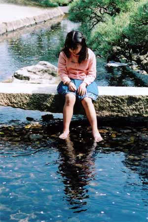 裸足で川に入っていた女の子です。これはまったく演出してません。写真頼んだら一人でこの格好してくれました。すばらしい! 単に、興味が無かったのかもしれませんが(笑)。