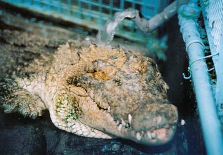 嘘です、バナナワニ園のワニです。浴びているのは、ほんまモンの温泉です。