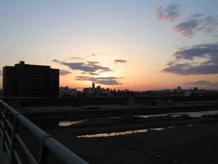 「夕日と影の町」