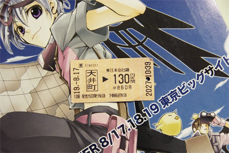 機械の身体をただでくれる惑星があると言う… そんな上手い話には、普段なら絶対に釣られない私ですが、 この2〜3日なら引っかかってしまいそうです(爆)。 写真は、地球発アンドロメダ行きのパス、ではなくて、 コミケ初日会場時間前後の大井町駅から品川までの切符。 その時間そこに居ました。で、ホテルをチェックアウトしてそのまま品川から新幹線で帰りました…。 挫折感と、勇気を持って撤退した誇り。複雑に絡み合った二つの感情の、証として。